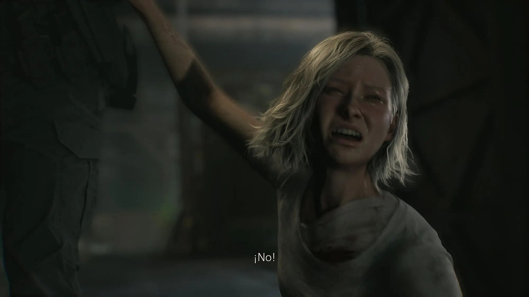 En el momento más crítico aparece Leon. Sin dudarlo, abate a la criatura en la que se ha convertido Emily y salva a Grace. Pero Grace no lo ve como una salvación. Para ella es otra pérdida. Otra persona a la que no ha podido proteger. El patrón se repite: primero su madre Alysha, ahora Emily. Grace se rompe por dentro. La expresión de su cara en primer plano, con la camiseta ensangrentada y el pelo pegado a la frente, lo dice todo: ha perdido el rumbo completamente.