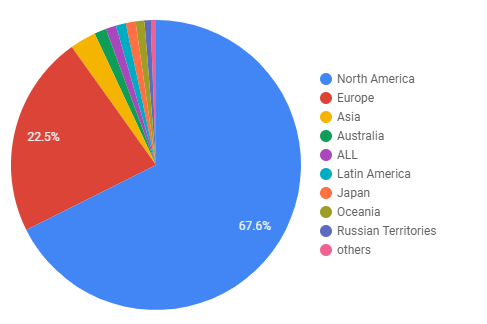 Simultáneamente, resaltamos que 370.000 unidades del número enfatizado pertenecen a la versión de Nintendo Switch, mientras que la variante de PC es la que más ejemplares ha vendido aunque haya sido la primera de las mencionadas aquélla que más rápido ha generado ventas. De igual manera, en lo que a división regional se refiere, la siguiente torta indica cómo se desenvolvió el juego según la localización: