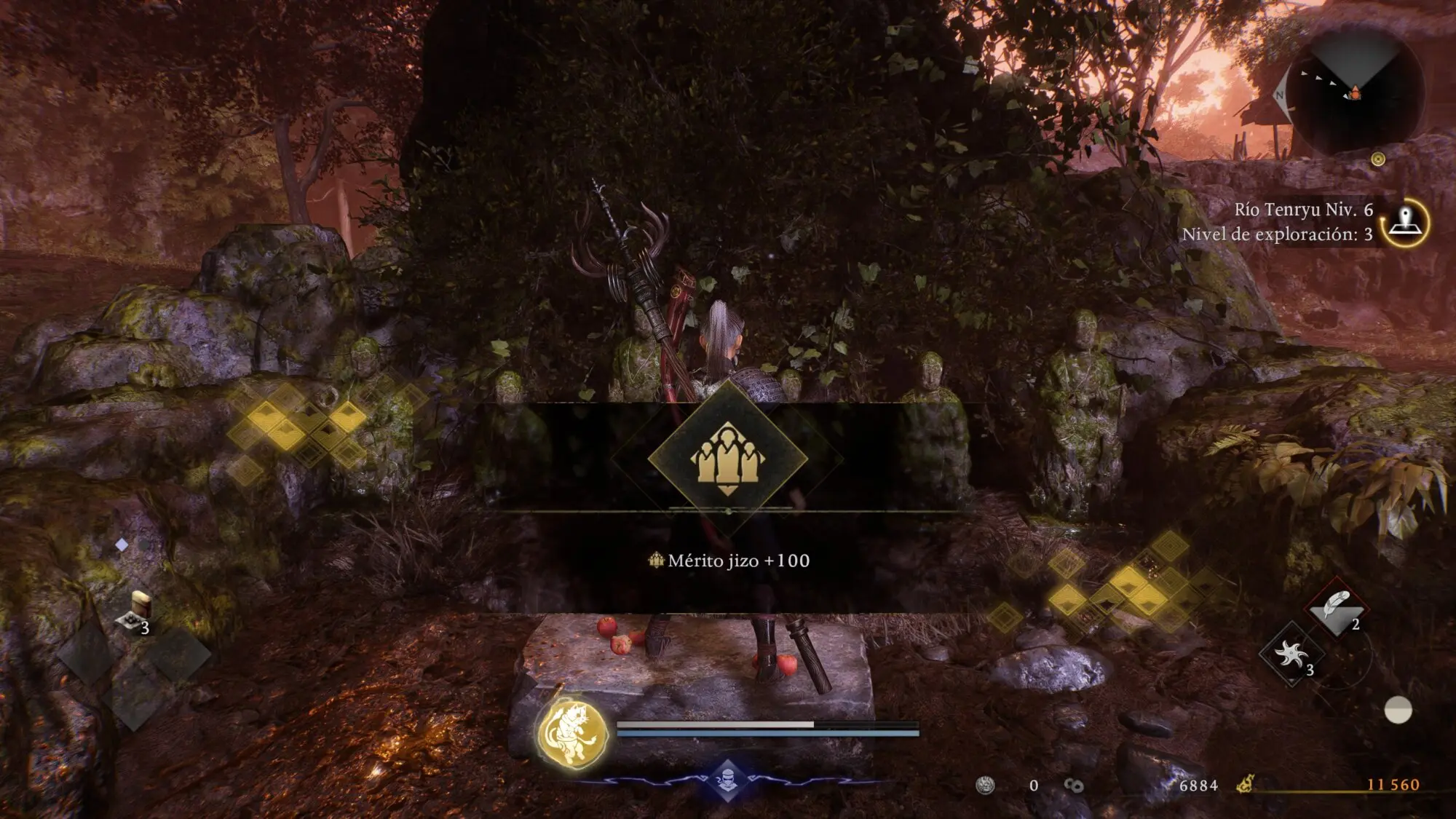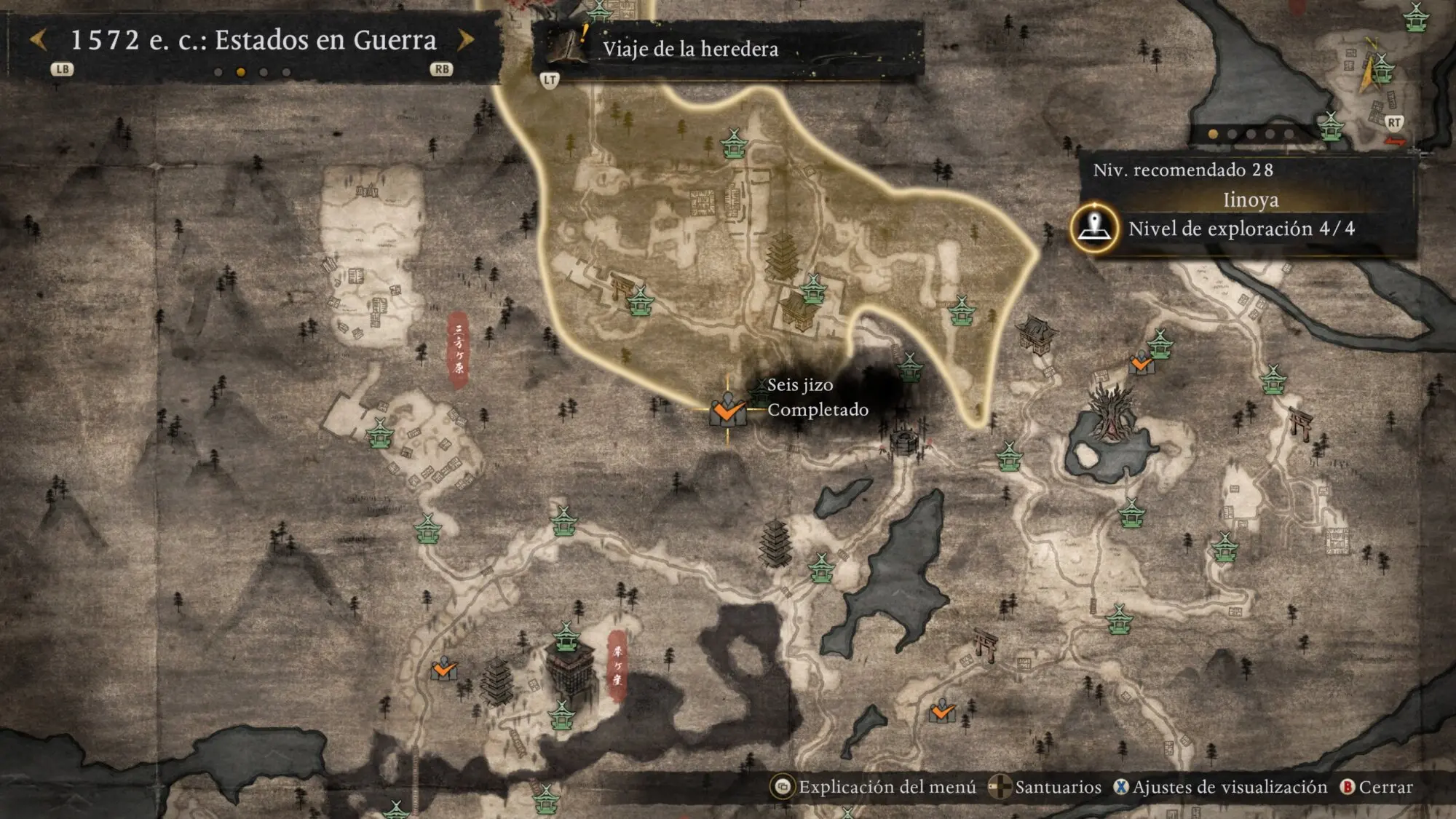 Las Estatuas Jizo aparecen marcadas automáticamente en tu mapa con icono blanco de estatua cuando alcanzas Nivel de Exploración 4 en una región. Pulsa R2 en el mapa para ver el rastreador de coleccionables.