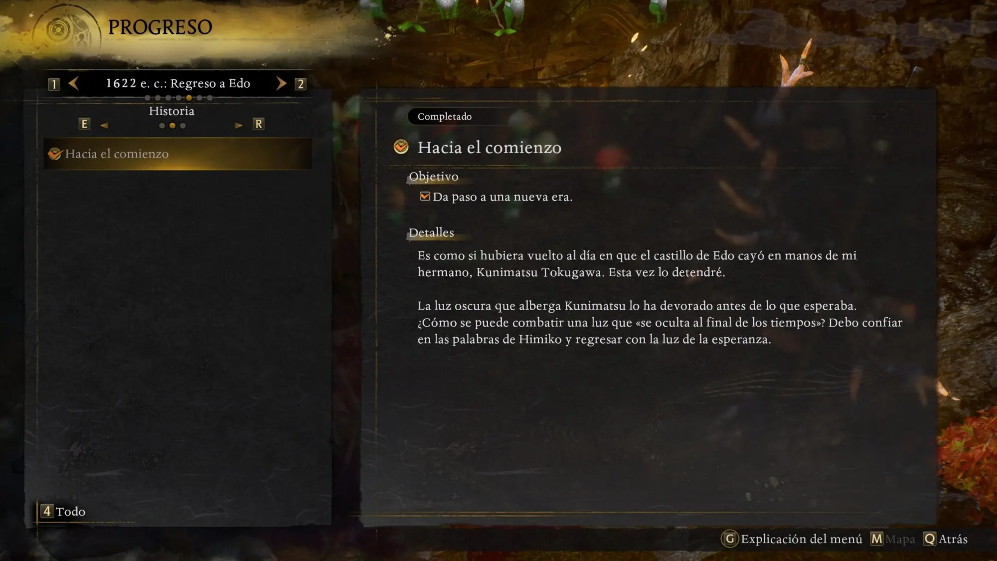 1622 e.c.: Regreso a Edo Misiones Principales 📜 Misión ✅ Hacia el comienzo ✅ Luz de esperanza ✅ Madera de shogun ✅ Un final siniestro ✅