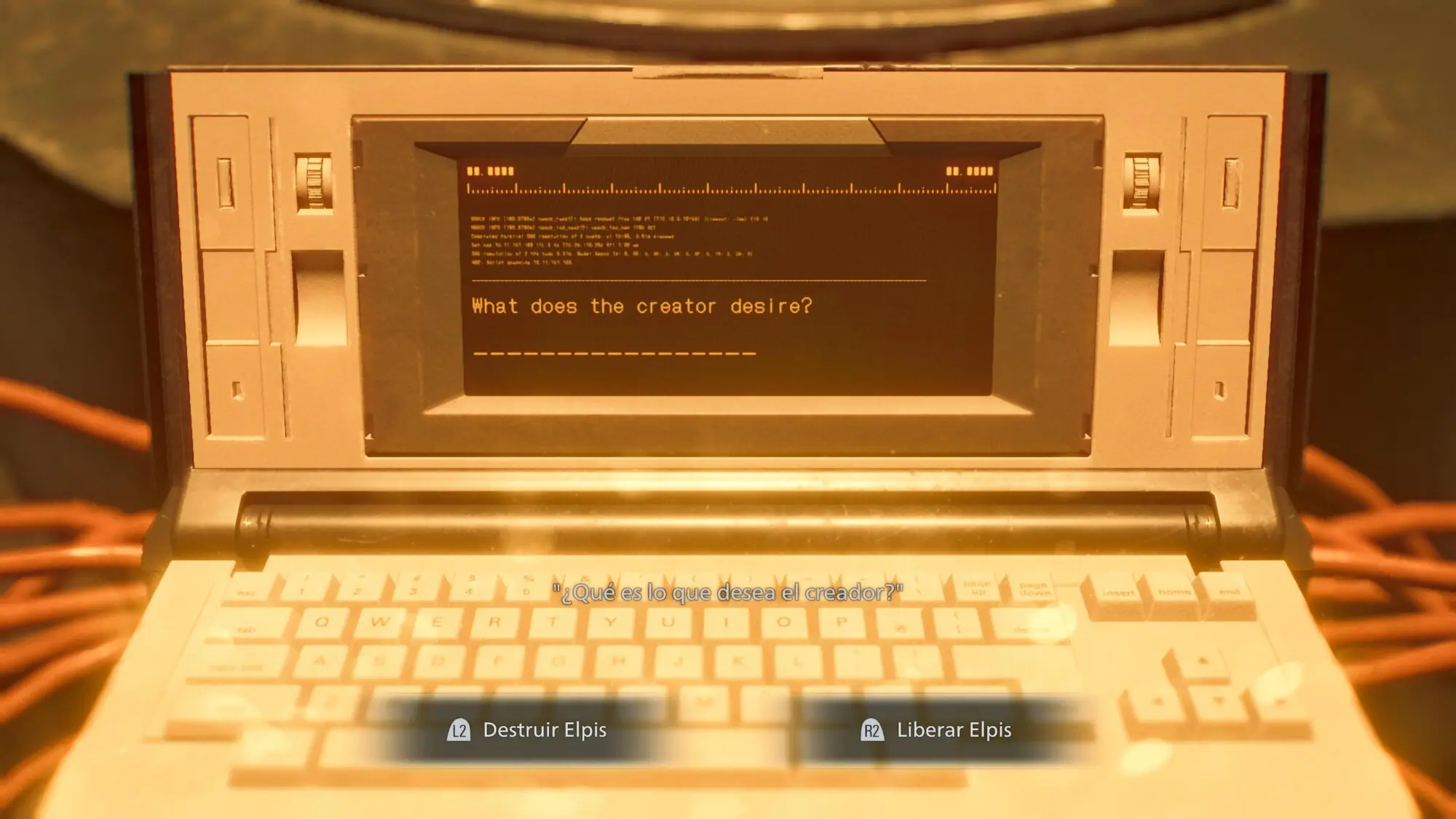 Final bueno Liberar el Elpis El final real y completo de la historia Tras los créditos el juego te devuelve al momento de la decisión