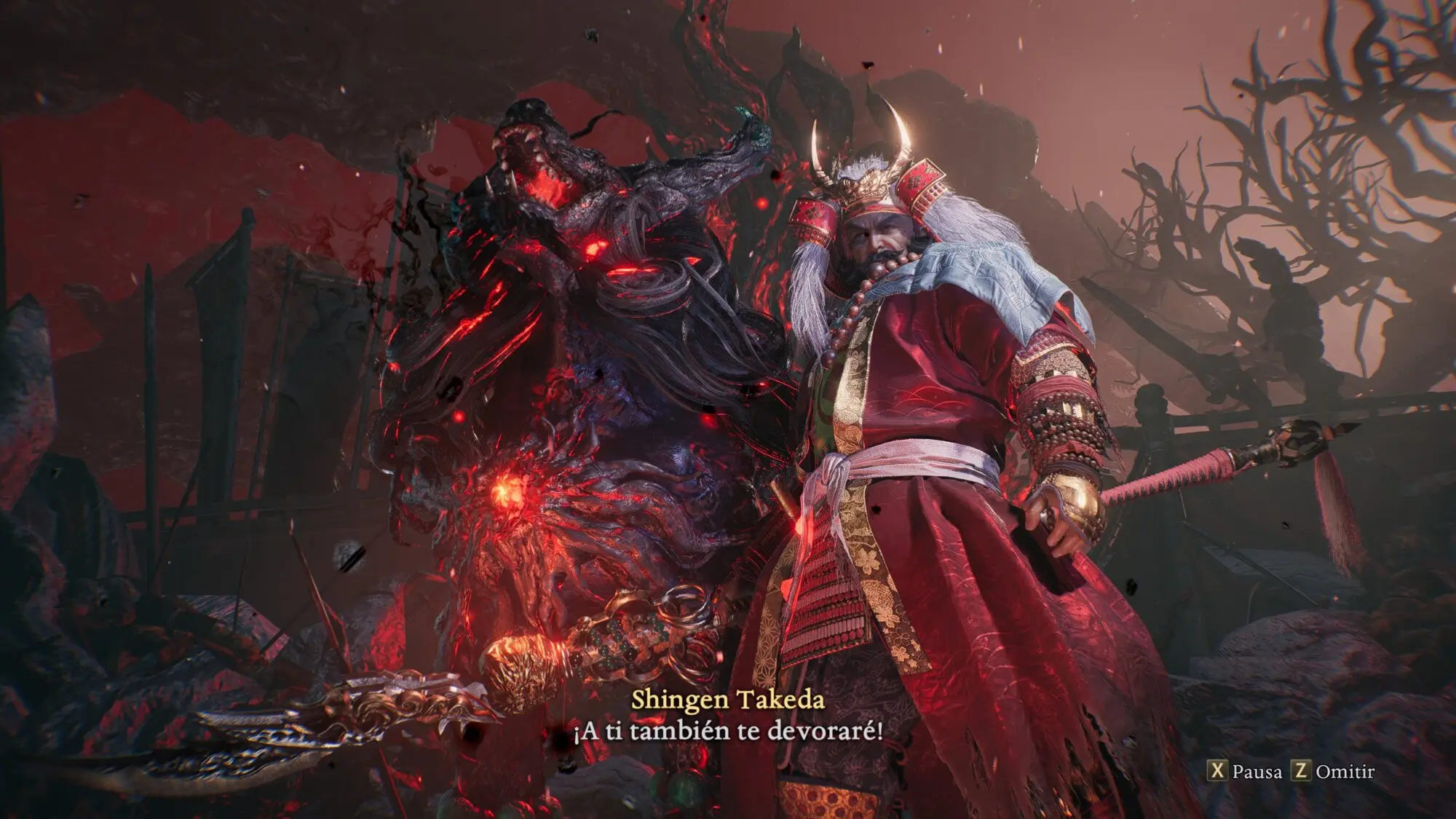 Shingen Takeda regresa transformado en un monstruo yokai gigante con una sola barra de vida pero ataques devastadores de área. Usa movimiento de agarre inicial, golpes al suelo con ondas expansivas, y una segunda fase ardiente con bolas de fuego gigantes. Estrategia hit-and-run es esencial.