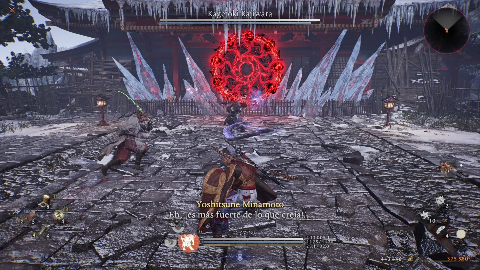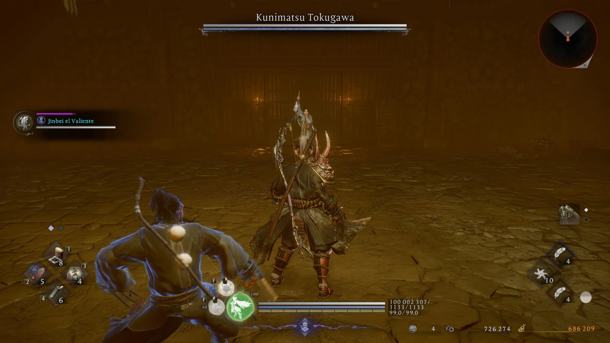 Yoshinobu Tokugawa te espera inmediatamente después de Okita Soji con tus recursos ya mermados. Es un jefe monstruoso yokai que alterna entre estado normal y fase transformada según su Ki. Lo bueno es que no es particularmente complicado si gestionaste bien tus recursos en Okita.