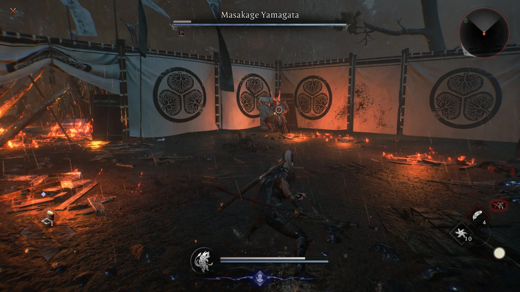 Yamagata Masakage regresa montado a caballo con una espada gigante, arco y ataques de fuego. Este jefe alterna entre Fase Normal (melé + arco) y Fase de Fuego (ataques exclusivos de fuego). La clave es aprovechar cada fase de forma diferente: melé en normal, Ninjutsu a distancia en fuego.