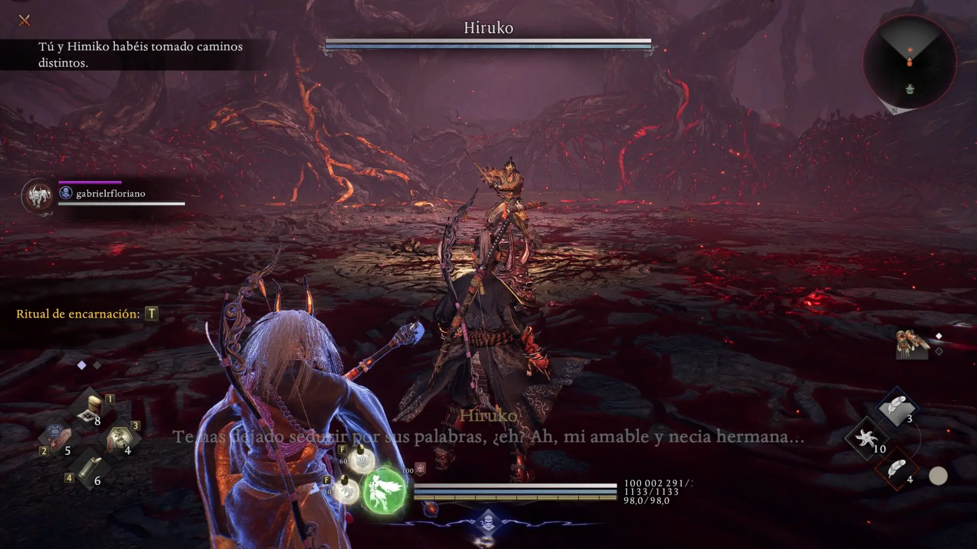 Hiruko regresa como jefe final del juego y sorprendentemente es bastante accesible comparado con pesadillas anteriores como Kunimatsu. Una sola barra de vida, salud modesta, y vulnerable a tu arsenal completo. Si llegaste hasta aquí, tienes todas las herramientas para vencerlo limpiamente.