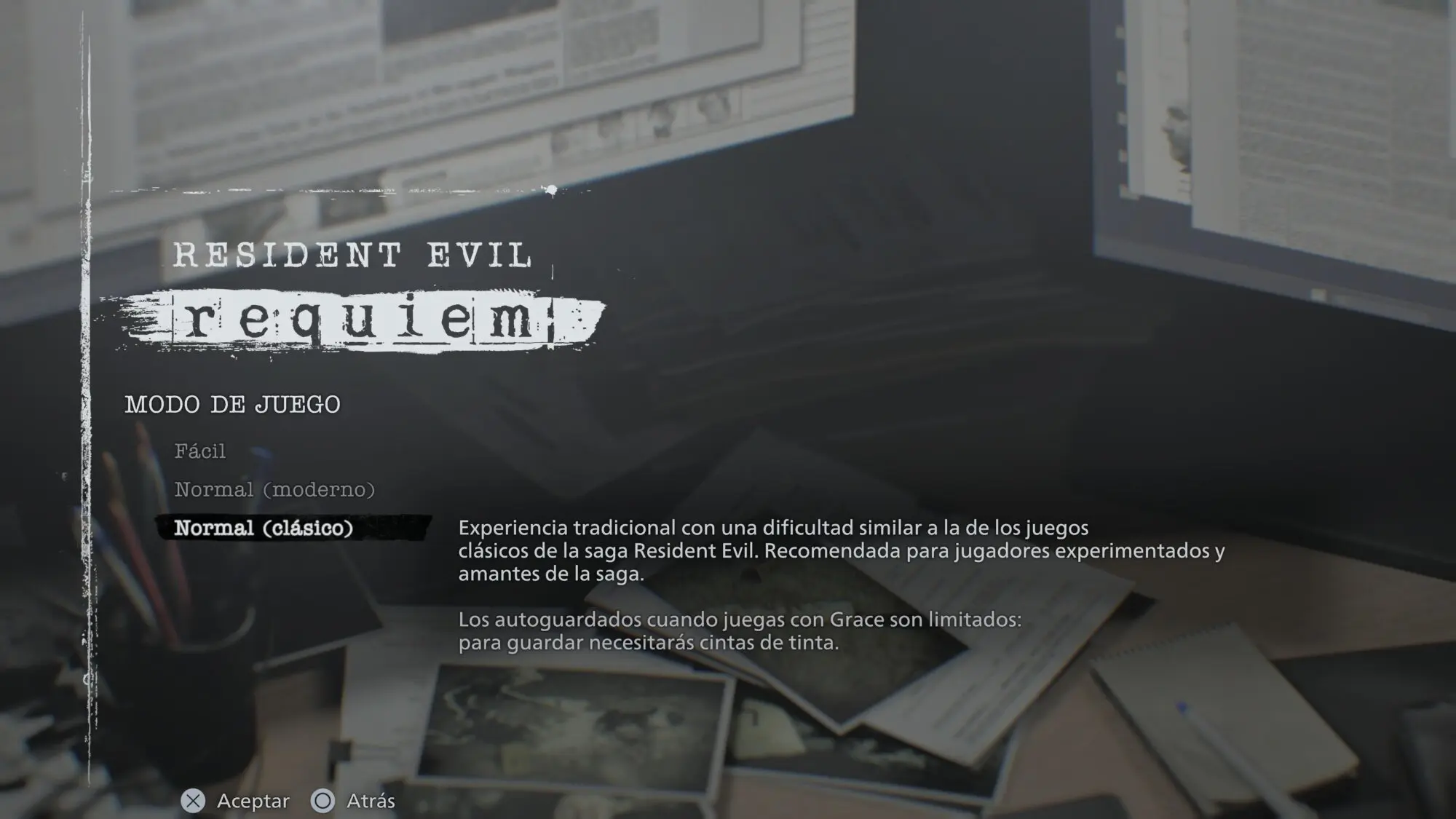 | Normal Clásico | Media-alta. Necesitan más disparos | Manual: máquina de escribir (Grace) u ordenador (Leon) | Escasea bastante | Fans de la saga, experiencia RE auténtica |
