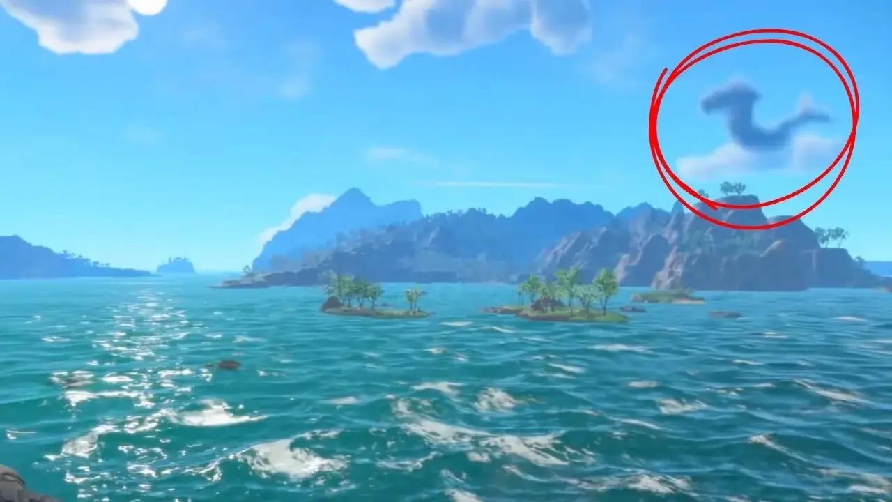 En nuestro repaso por todos los Pokémon confirmados hasta el momento de Pokémon Viento y Pokémon Oleaje ya nos hicimos eco de esto: durante unos segundos del tráiler de presentación de los nuevos juegos, una nube en el cielo se muestra claramente más oscura que el resto, con una silueta de lo que parece ser un dragón (o algo similar). Nosotros lo asociamos con Gyarados, pero es cierto que resulta muy extraño que un Pokémon ya conocido apareciese de esa forma. ¿Una pequeña pista de lo que está por llegar?