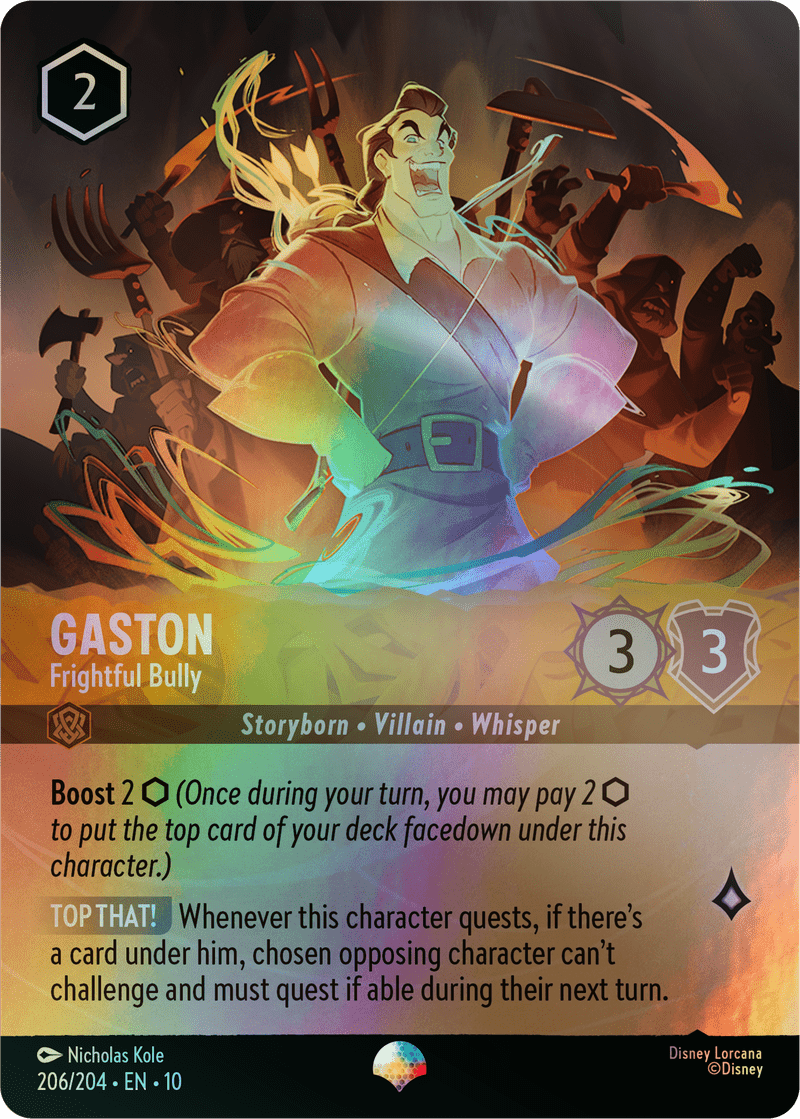 Si hay algo que de verdad hace destacar a Lorcana sobre el resto de juegos de cartas coleccionables es su particular magia para fundir la narrativa y la jugabilidad. Susurros es una pieza fundamental de este set y que facilita el meternos en la piel de un verdadero detective. Se trata de una nueva clasificación de glimmers que no están formados del todo, siendo nuestra tarea descubrir más sobre estos desencadenando sus habilidades con la nueva mecánica Boost y así extraer su verdadero potencial.