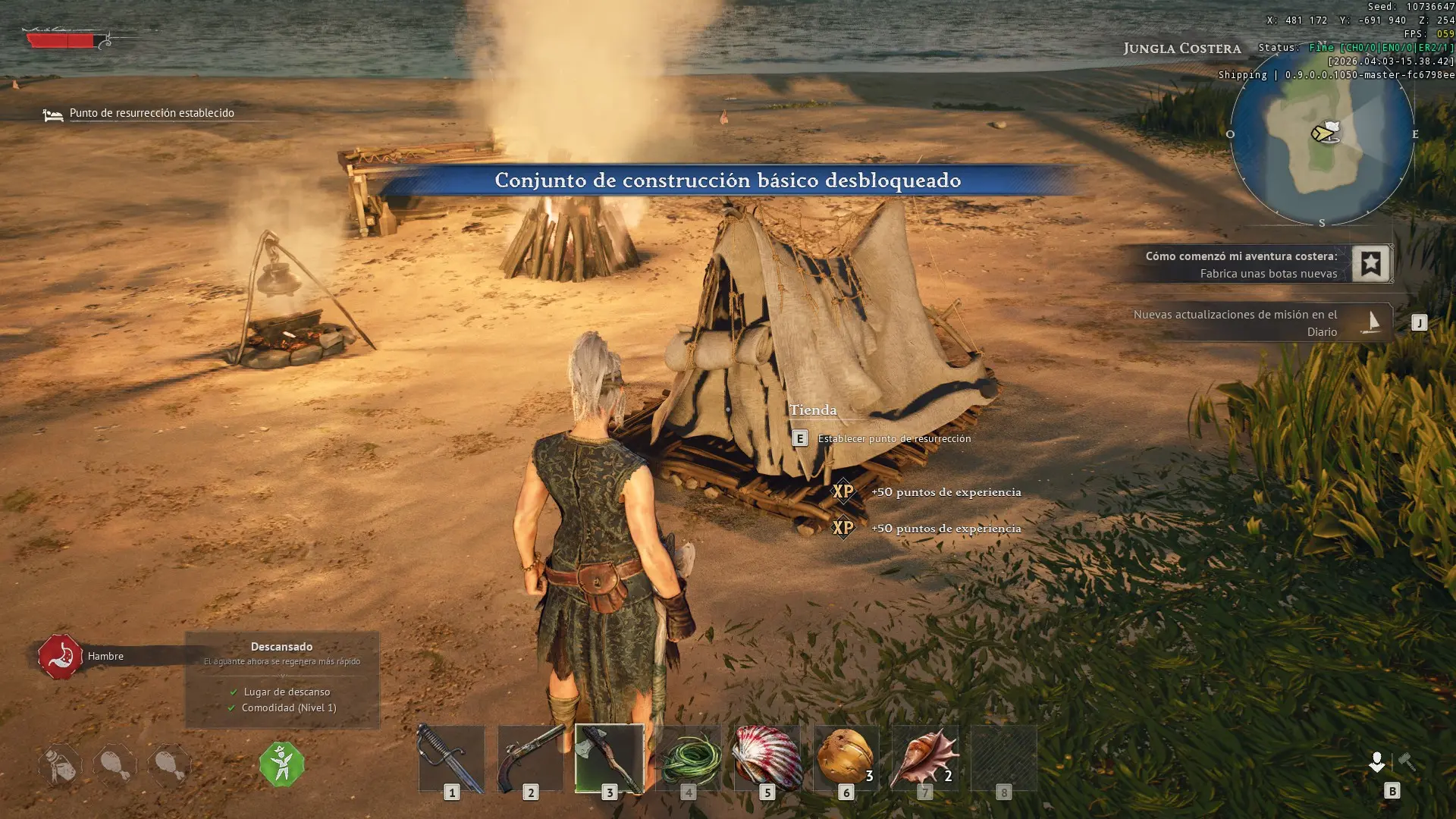 A nivel gráfico, Windrose es correcto sin ser espectacular. La iluminación es buena, el agua se ve muy bien y las islas tienen topografía variada con acantilados, playas y vegetación. Pero las texturas no impresionan y el nivel de detalle general está por debajo de lo que ofrecen otros survival actuales. Donde sí destaca es en el rendimiento: el juego va como la seda, no he experimentado crasheos y las caídas de frames han sido prácticamente inexistentes. Para un acceso anticipado de un estudio independiente es un resultado técnico sobresaliente.